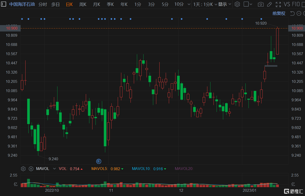 格隆汇1月18日丨中国海洋石油(0883.HK)再度拉升涨4%,盘中高见10.92港元创7个月新高价,总市值5185亿港元。公司日前公布2023年经营策略和发展计划。中国海油上调今年产量目标和资本支出预算,净产量目标为650-660百万桶油当量,资本支出预算总额达1000亿-1100亿元。对于2023年全球石油需求前景尤其是需求增长强度,大多数机构认为,需求还将持续增长。
