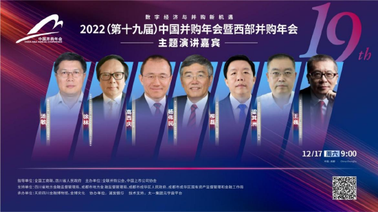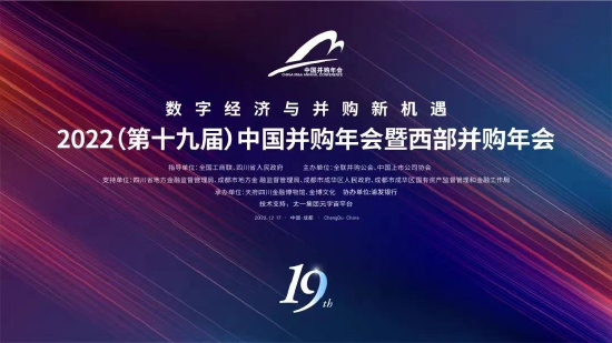 2022年12月17日,以“数字经济与并购新机遇”为主题的2022(第十九届)中国并购年会暨西部并购年会线上圆满举办。年会在全国工商联、四川省人民政府的指导下,由全联并购公会、中国上市公司协会共同主办,四川省地方金融监督管理局、成都市地方金融监督管理局、成都市成华区人民政府、成都市成华区国有资产监督管理和金融工作局给予大力支持,浦发银行协办,天府四川金融博物馆与金博文化联合承办。本届年会设置了嘉宾致辞、主题演讲、圆桌论坛、重要项目仪式,以及备受业界瞩目的2022年度并购专项奖颁奖典礼,并在虚拟数字场景中呈现,为观众带来虚实交互的视觉盛况。