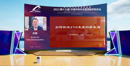 著名经济学家汤敏以 “如何抓住ESG发展的新机遇”为题,首先谈到“ESG”代表环境、社会和治理,从三个方面来理解,即全球ESG的新进展、中国推动ESG的新进展、投资界推动ESG的机遇与挑战。全球各类监测、各种手段,包括各国政府将不断出台的政策,如果一家公司在ESG,即环保、公司发展、社会治理方面做得好,其长期的平均投资收益远超一般企业,且收益差会不断拉大,这对于投资界来说是非常重要的。中国投资界已经非常关注ESG,ESG领域也将有更多的机遇和更大的挑战。不符合ESG,破坏环境、破坏气候的企业在未来将会受到很大冲击。